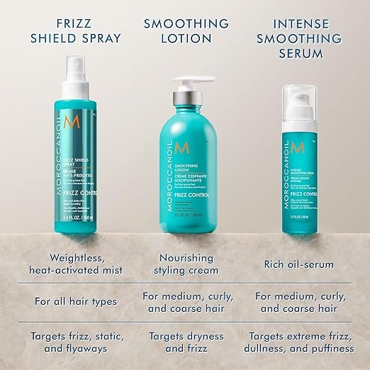Moroccanoil Smoothing Lotion is a nourishing styling cream designed for medium, curly, and coarse hair types. Infused with argan oil, argan butter, Vitamin E, and essential fatty acids, it controls frizz, increases manageability, and provides flexible hold and definition. This lightweight formula leaves hair 58% smoother and reduces breakage by 72%, delivering soft, shiny, and effortlessly styled hair with a signature Mediterranean-inspired scent. Try it for long-lasting smoothness and shine.